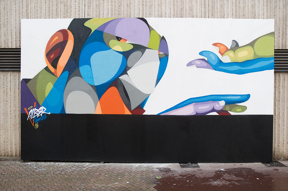 Artiste peintre et graffeur bordelais de 29 ans, Alber développe un style technique et exigeant, sur murs et supports variés. À la recherche du trait parfait, ses courbes précises, ses aplat proprement découpés et ses personnages caricaturés sont les dénominateurs communs à l’ensemble de son travail. Souvent en camaïeu, les visages dans l’œuvre d’ALBER se sont imposés après quelques années de recherche autour d’un lettrage entre « wildstyle » et 3D. Éléments centraux dans la proposition artistique d’Alber, les regards, ces fenêtres sur un monde intérieur, sur l’intime et le non- dit, sont rarement francs. Ils sont parfois défiance ou affirmation hautaine d’une supériorité sur l’autre, ils sont parfois séduction et en recherche de reconnaissance. Les personnages créés par l’artiste sont habités par une émotion subtile ; le spectateur en est le témoin. Laissé libre de toute interprétation, il ne s’agit alors que de jeux de regards entre lui et la toile où l’observé n’est pas toujours celui que l’on croit.