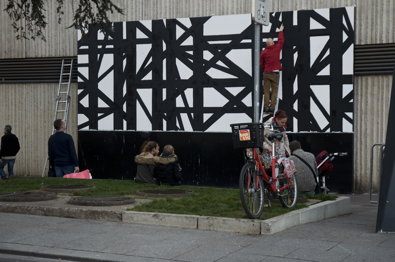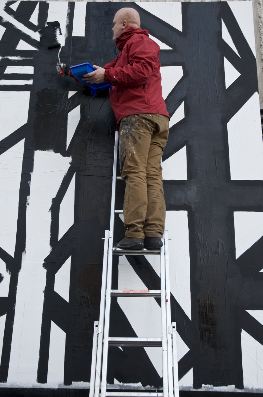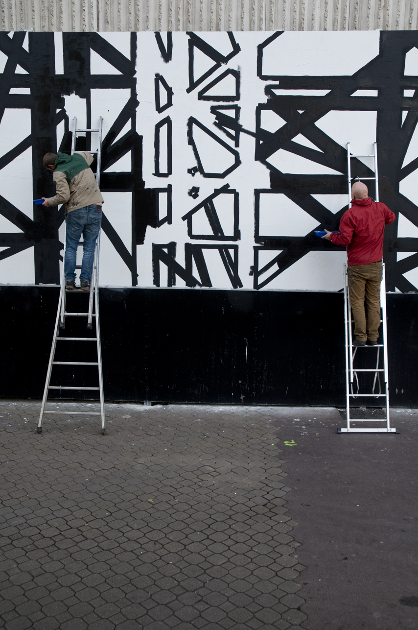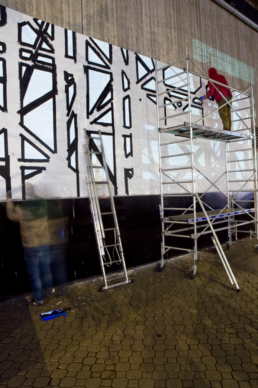 Ce duo d’artistes formé d’Erris Huigens et de Gysbert Zijlstra est né il y a plus de dix ans, lorsqu‘ils se sont rendus compte qu’ils photographiaient la ville de manière analogue. Leur travail est directement issu de l’esthétique que constituent les éléments de construction et déconstruction du paysage urbain. Ils font de l’observation des grues, des échafaudages et de toutes architectures métalliques qui bouillonnent dans les zones portuaires et industrielles du pays, un système ornemental sophistiqué, en dignes descendants du mouvement De Stijl, utilisant majoritairement le noir et le blanc, sur des supports très variés. Entre réflexion architecturale, graphisme et constructivisme leurs œuvres agissent comme autant de kaléidoscopes urbains.
