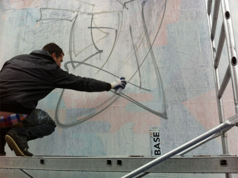 Dans les années 90, Rodes percute la galaxie du graffiti et de ses lettres dans leur infinie variété de formes et de couleurs. L’alphabet qu’il voyait morne et normé lui apparaît alors comme impertinent et bouillonnant de créativité ; devenir acteur de cette ferveur artistique s’installe en lui comme une évidence. Membre du collectif artistique informel Moulin Crew, il s’inspire des univers de la typographie et de la calligraphie, et des styles ´ classiques ª du graffiti. Étudiant sans cesse l’anatomie des caractères pour mieux les dessiner, obsédé par l’abécédaire, son travail est une perpétuelle recherche d’innovation : tracer, étirer et plier les lignes, courber, dilater et écraser les formes, rechercher des connections entre les lettres, en souligner l’harmonie par des jeux de couleurs pertinents… Autant d’exercices propres aux passionnés du lettrage, provoquant une éprouvante jouissance lorsque les droites et les courbes se lient entre elles.