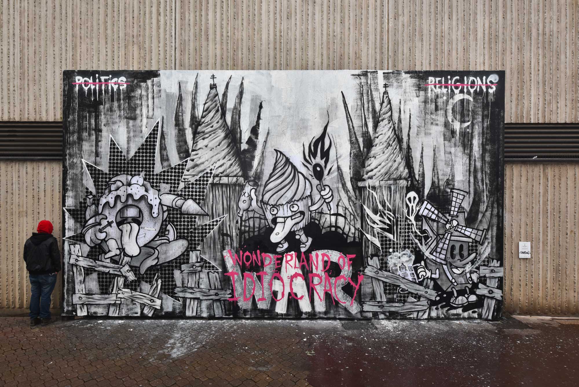 Petit Fantôme s’est fait un nom dans le graffiti nancéien par ses fresques recouvrant le site d’Oberlin. Il intègre le Moulin Crew lors du Projet Home, apportant sa touche explosive et indisciplinée. Ayant expérimenté différents styles, il reste fidèle à ses patterns de textures, qu’il mêle à des accumulations de coulures et d’éclaboussures, apportant un contraste ambigu à ses illustrations naïves. A priori enfantines, ses peintures prennent un caractère énigmatique si l’on s’y attarde un peu.
