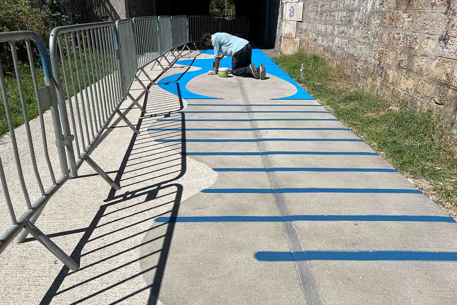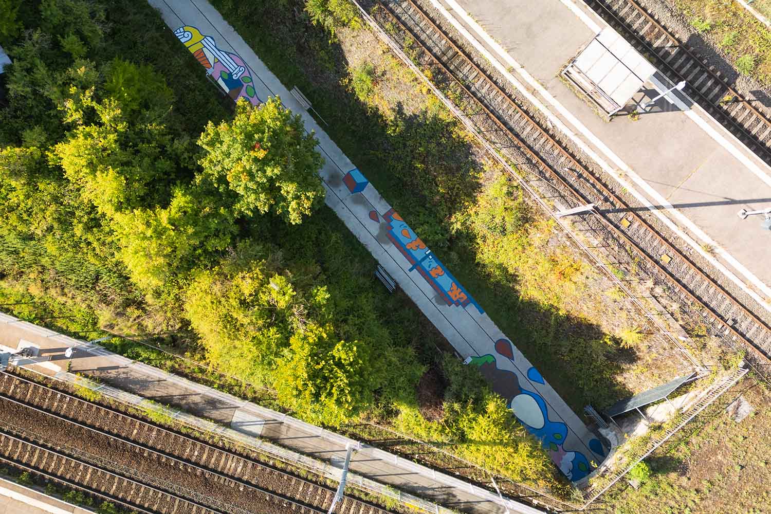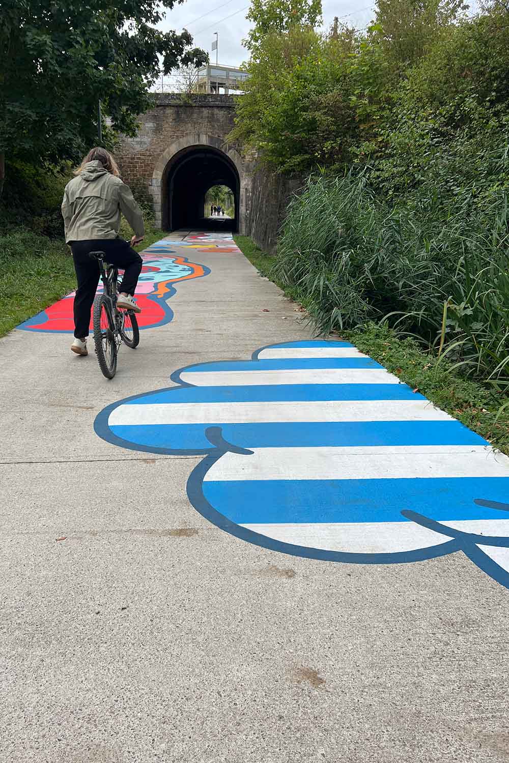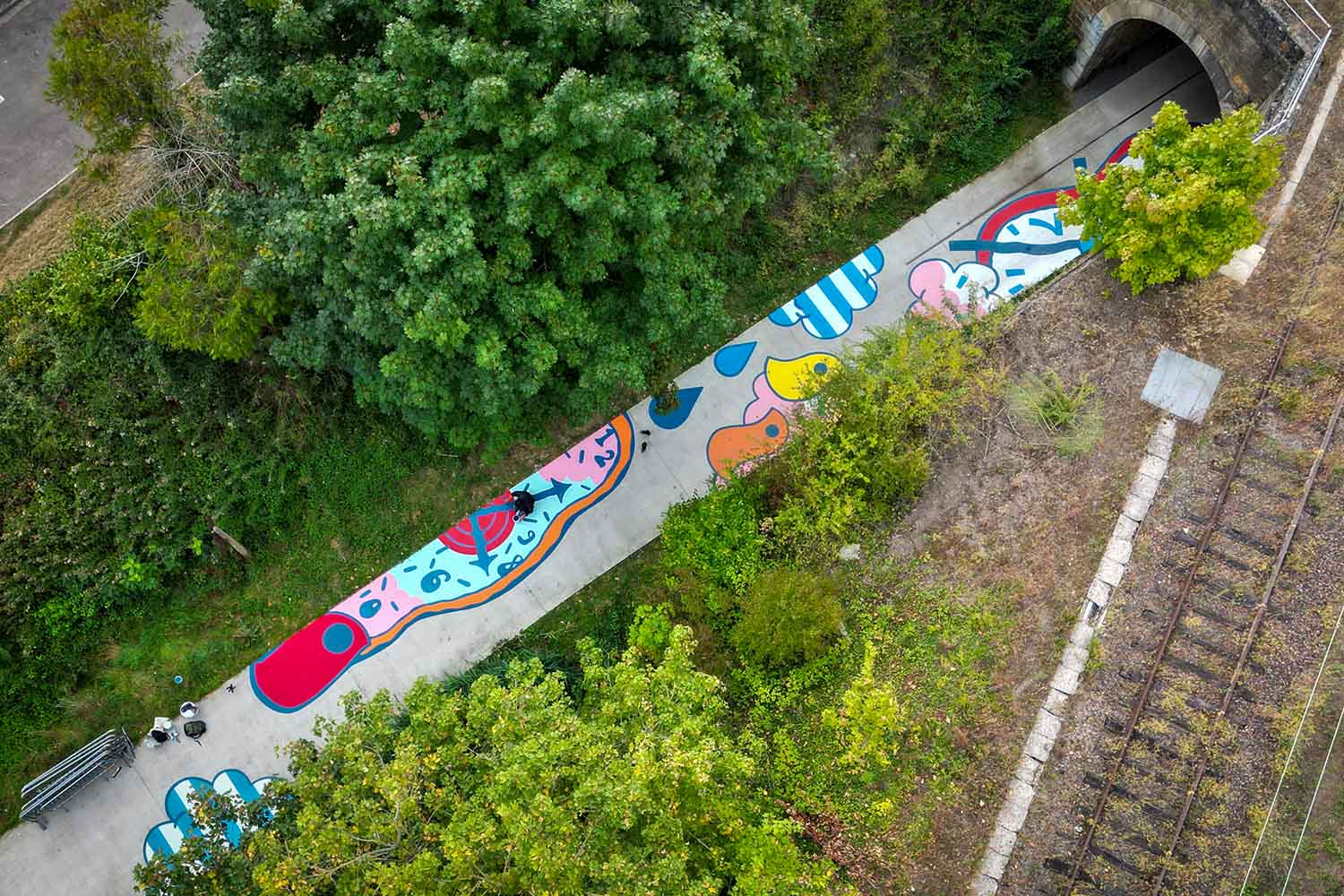 Dans le cadre du budget participatif 2025, les habitants ont demandé à rendre une partie de la Voie-Verte récemment rénovée, sous un passage de voie ferrée, plus agréable pour les passants. Construite sur une ancienne voie ferrée, la Voie-Verte a conservé quelques stigmates de rails qui donnent un aspect géométrique au lieu.