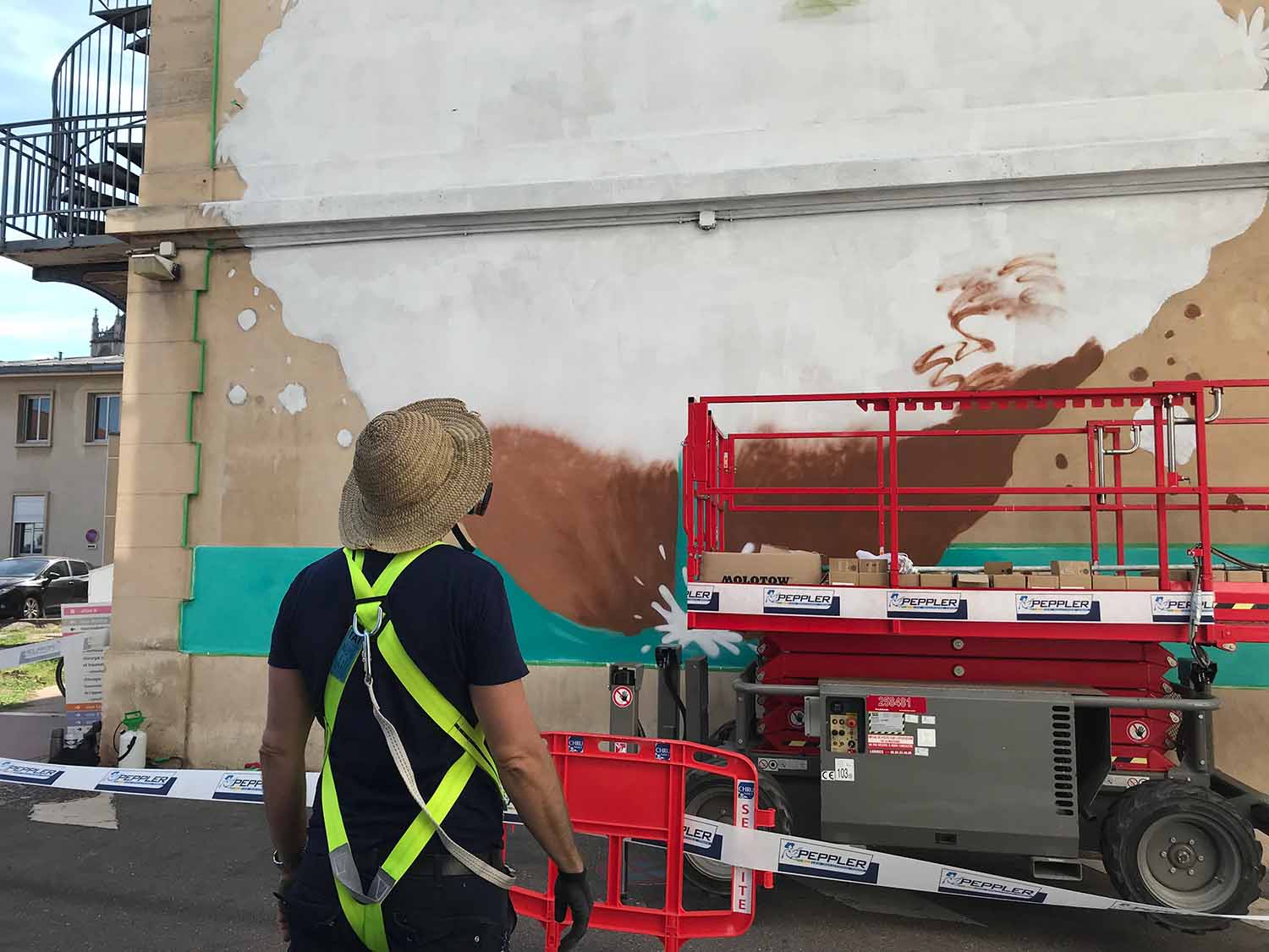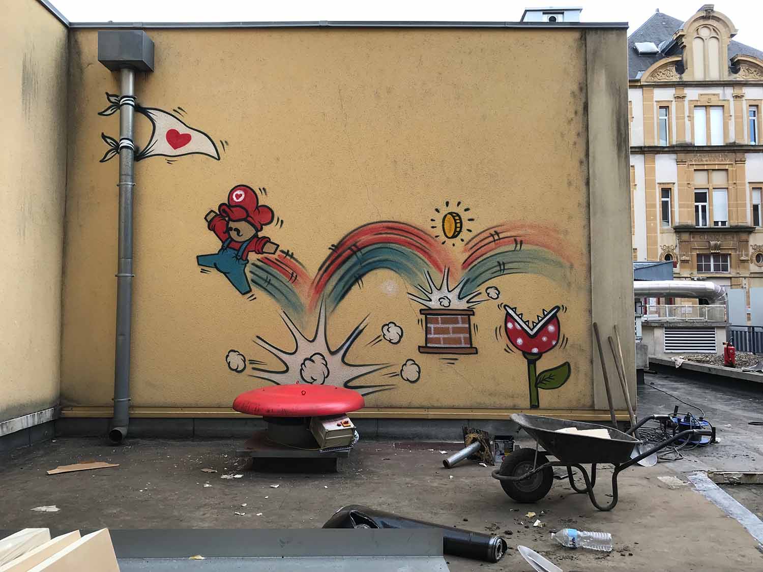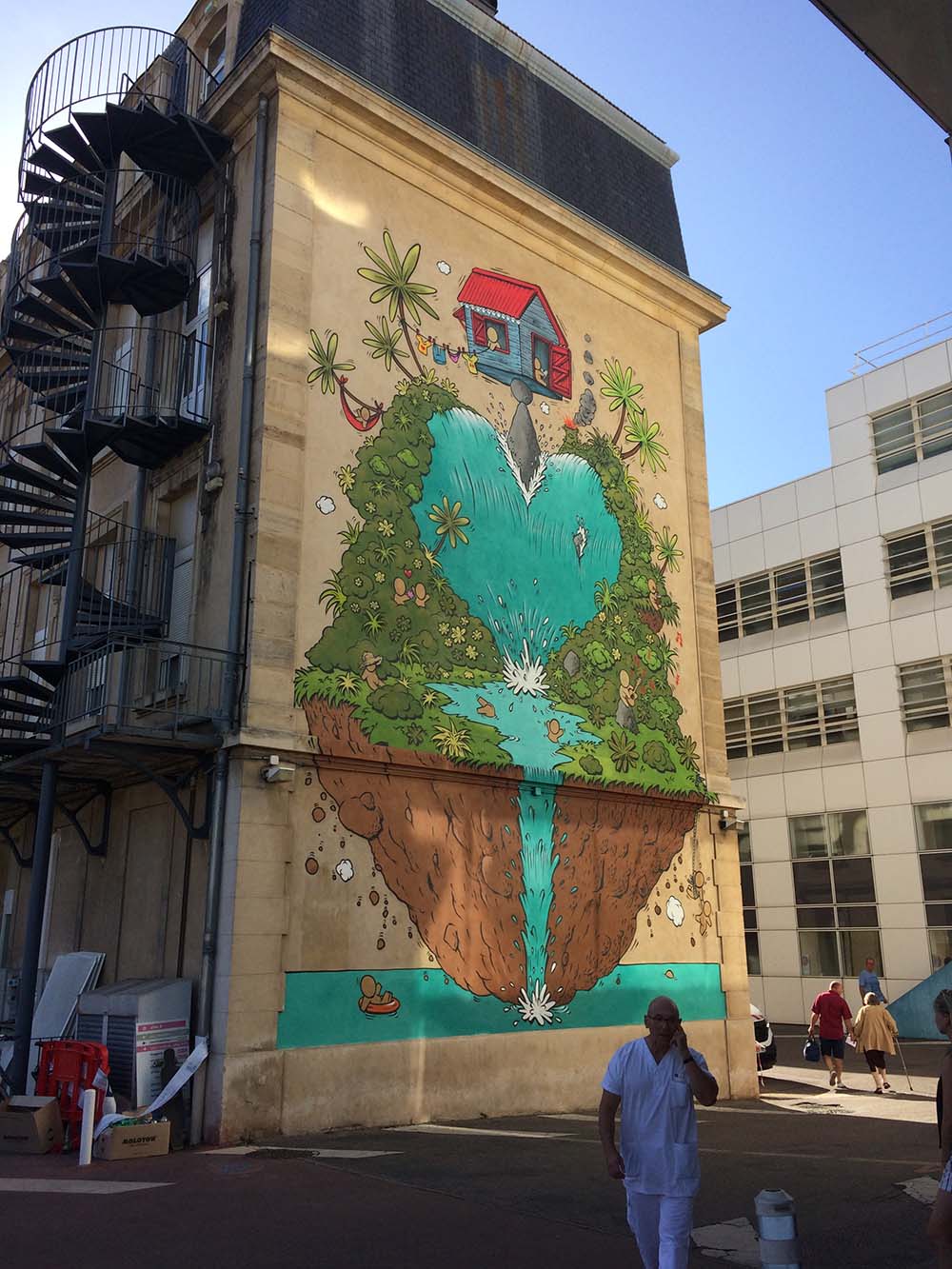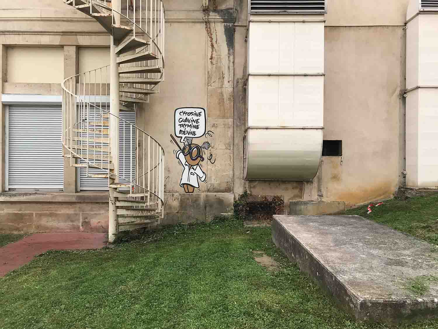 La direction du CHRU Nancy souhaitait une œuvre à message positif pour l’enceinte du CHRU Nancy. Notre choix s’est porté sur l’artiste Réunionnais Jace dont les Gouzous sont célèbres dans le monde entier. La commande consistait à réaliser une fresque sur un pignon, et à disperser quelques illustrations dans différents endroits, car contrairement à une idée reçue, le public peut librement se promener dans les parties extérieures et les couloirs principaux des hôpitaux.