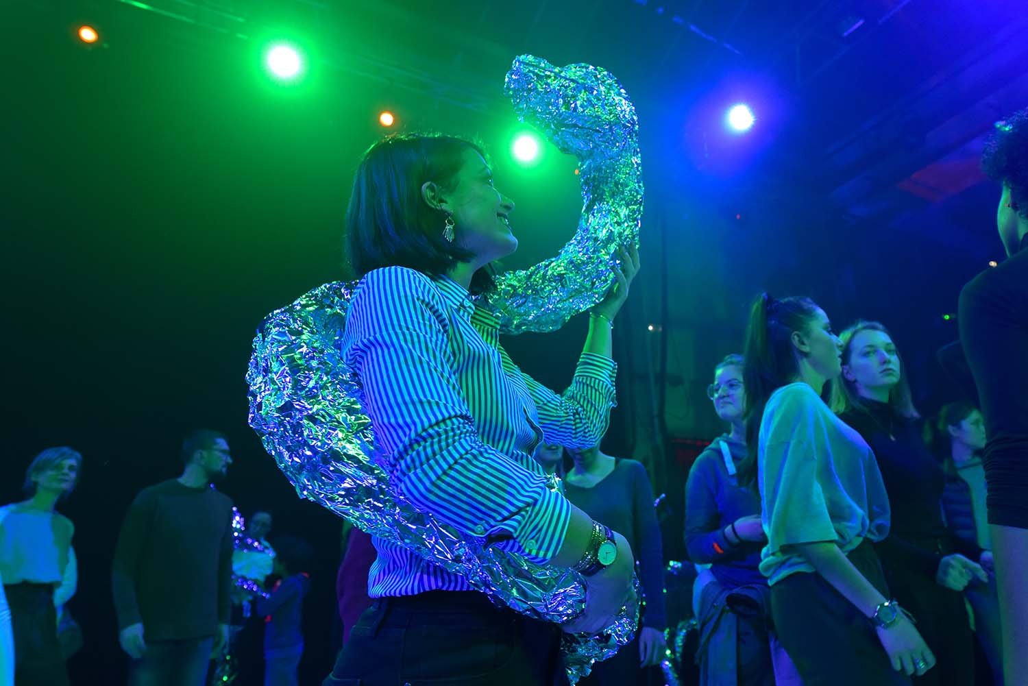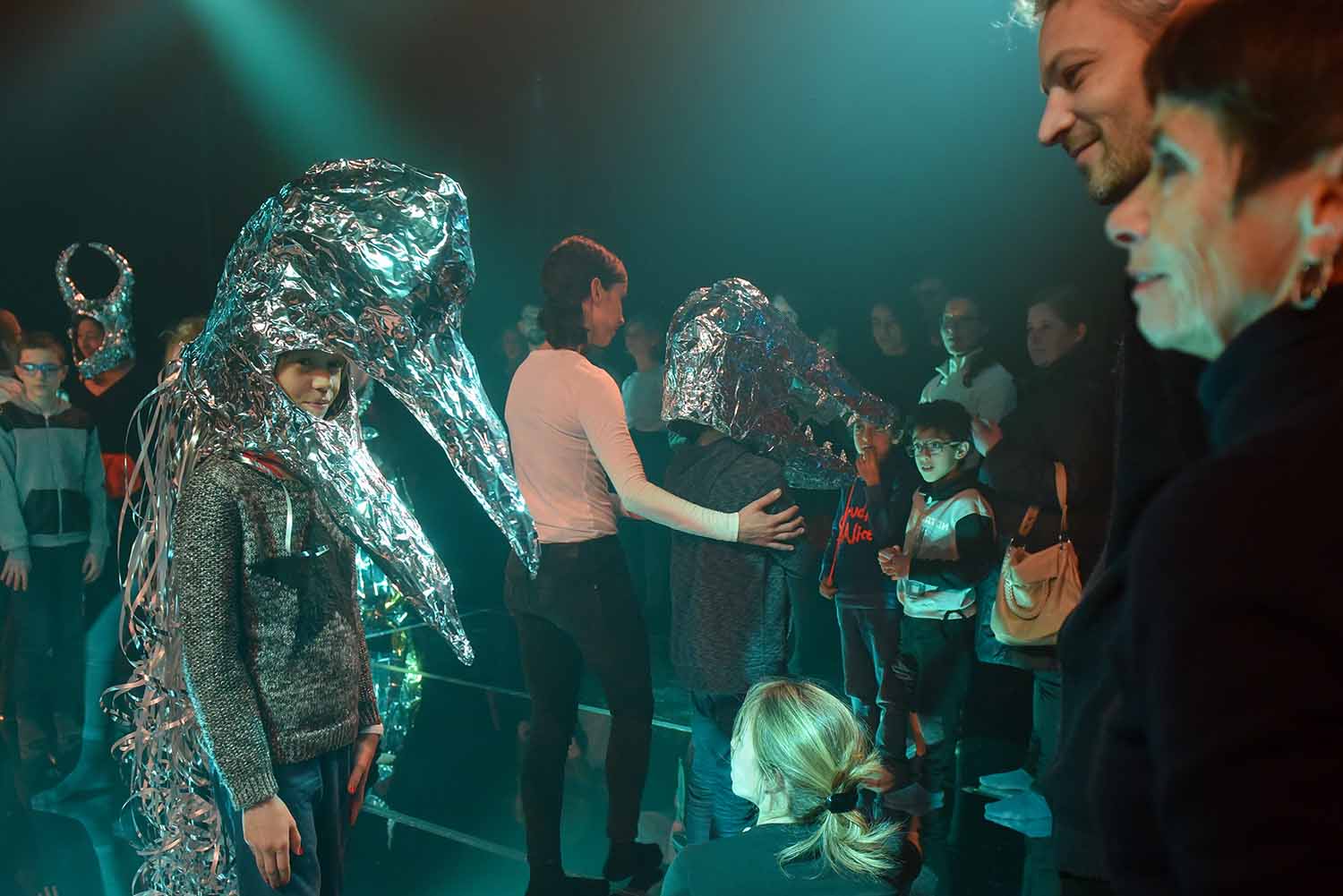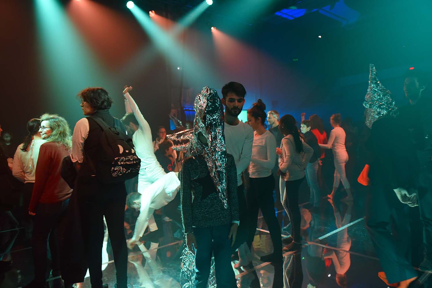 Nous avons proposé, avec l’artiste nancéien Gilbert Coqalane, une expérience immersive mêlant le public, les danseurs et l’artiste. Coqalane créait au fur et à mesure des animaux en aluminium, dont le public pouvait se saisir pour participer à une sorte de création improvisée commune.