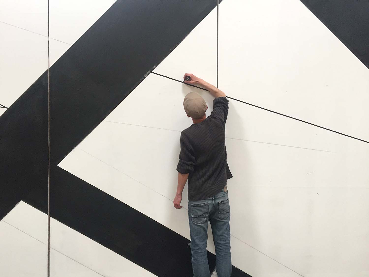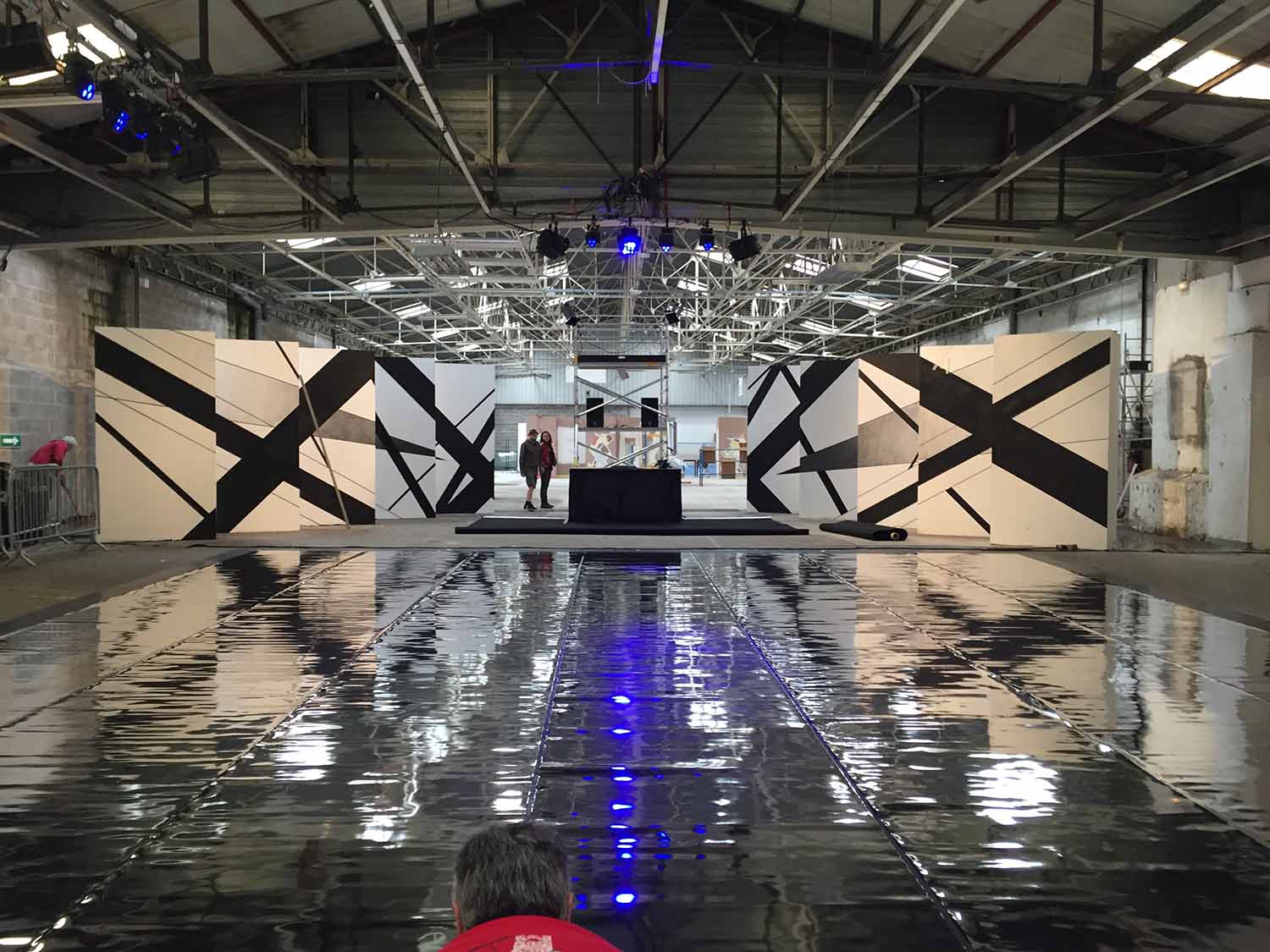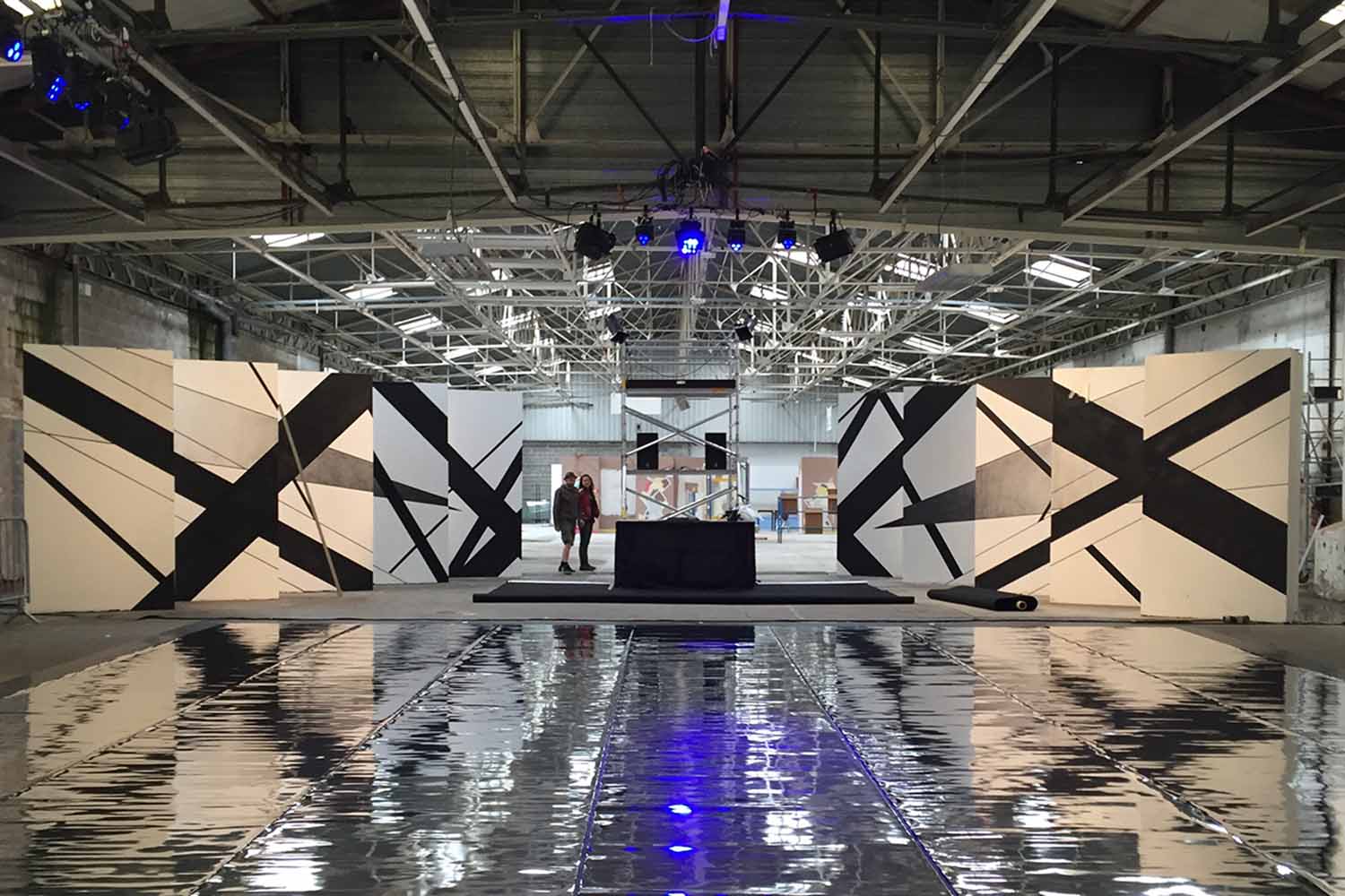 Les dimensions immenses de la salle représentaient un véritable défi ; occuper l’espace dans ce genre de lieu n’est pas facile. Le duo Graphic Surgery – Gilbert1 a donc travaillé en amont sur la scénographie, puis la peinture s’est achevée en live.