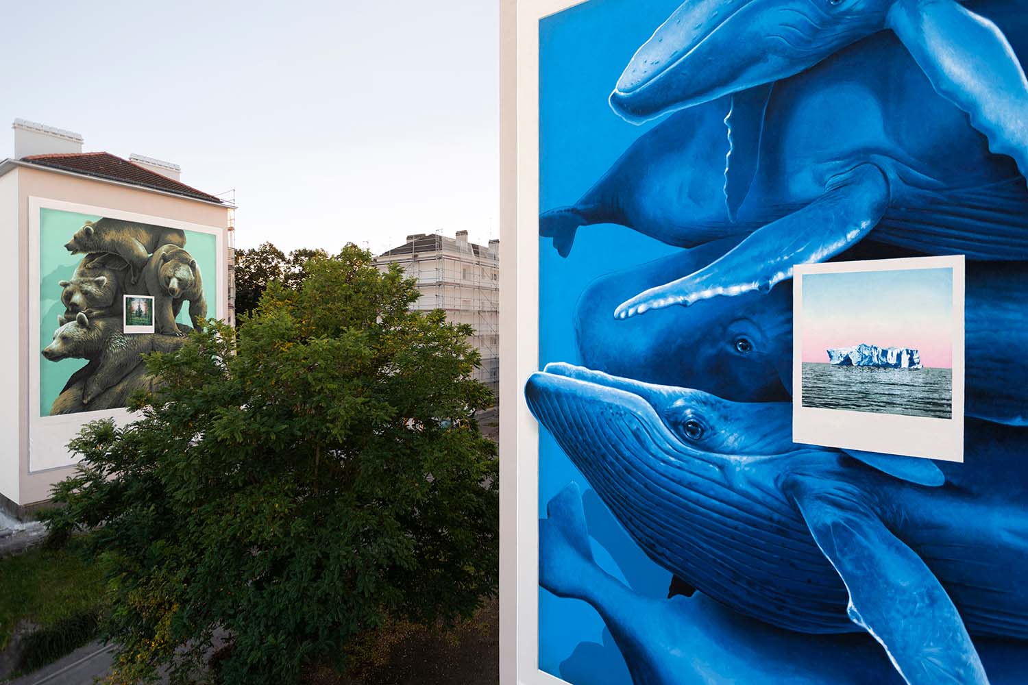 « Inspirés par la configuration particulière de ces deux murs, très proches l’un de l’autre mais orientés dans des directions différentes, nous avons imaginé une sorte d’album photo, une série de réceptacles de réalités multiples. L’ensemble a alors pris forme à la frontière entre le réel et sa perception, là où le geste humain de photographier devient à la fois un acte de possession, d’enfermement, de limitation, mais aussi une tentative de compréhension et une manière de mettre l’accent sur quelque chose qu’il faut regarder et, peut-être, préserver.